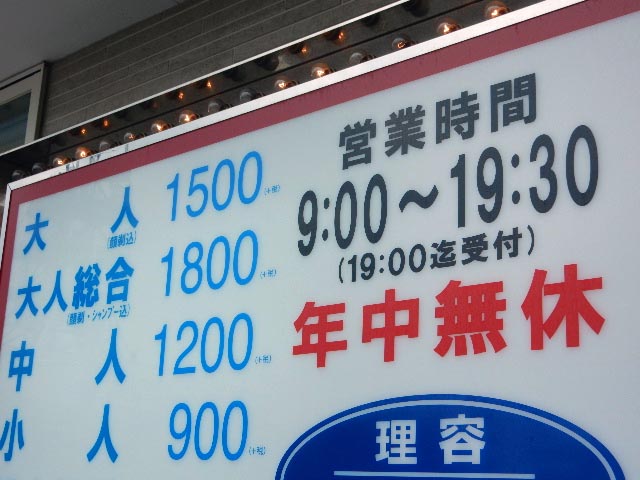 昔の散髪屋にありがちな「月曜日は休み」でもナイんですね。