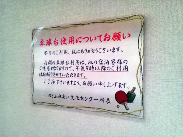 …穴水で泊まった公共施設の一角に、卓球台が置いてありました。