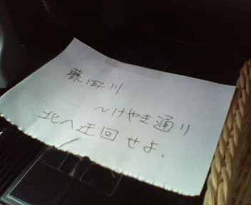 かも知れんので、メモに書いて車内に