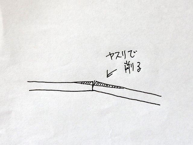 コレは後から修正するのは不可能なので、ヤスリで削って継ぎ目の