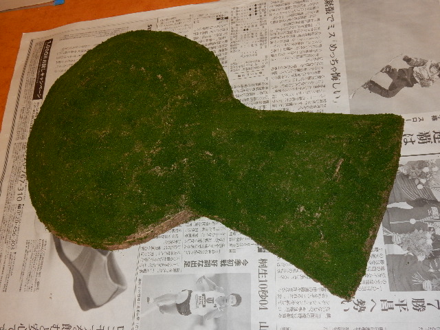 隙間の部分はまた田んぼにして誤魔化す事とし、人工芝を貼って完成。