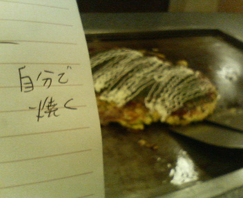 伝票に、そのまんま「自分で焼く」と書かれました。