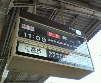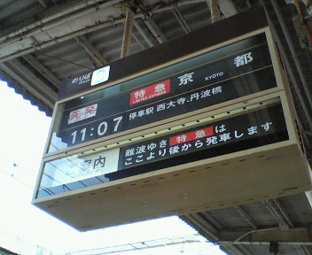京都行きが先に出て、2分後に大阪(難波)行きが出ます。