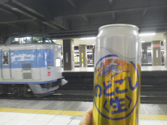 時間が空いてたので、駅のベンチで列車を肴に一杯(また昼間から)…。