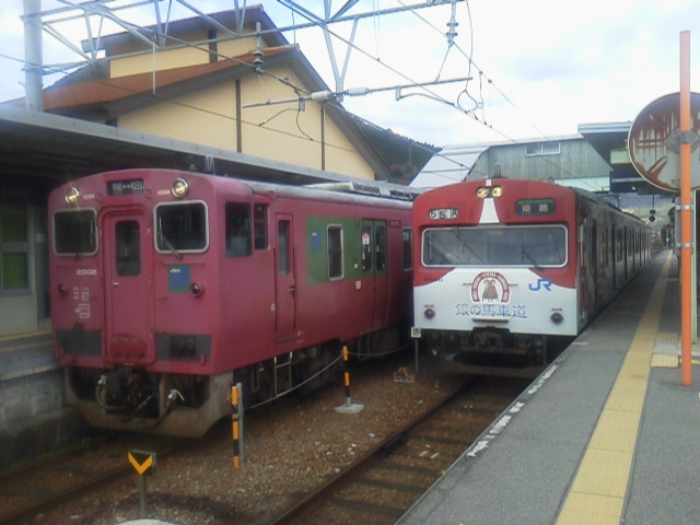 そんなこんなで寺前駅に到着。ココからは電化区間なので