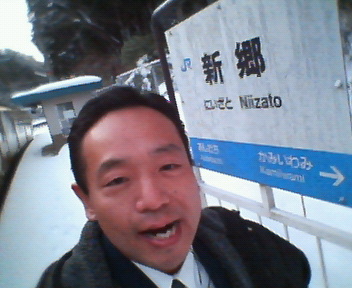 新郷(にいざと)駅に到着です。ここで時刻表を見ていたクラさん、