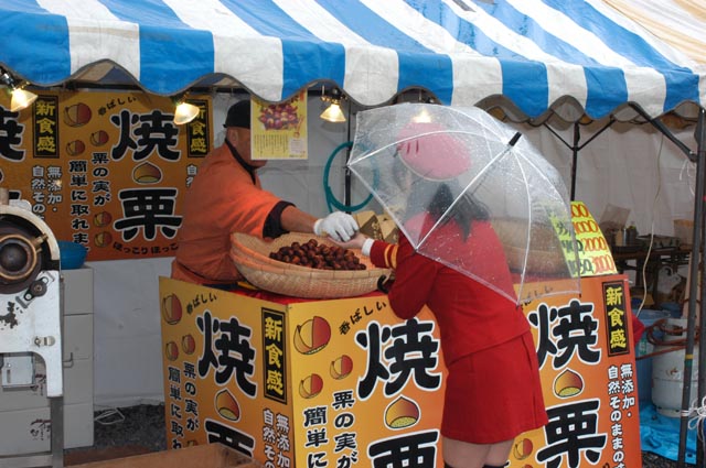 売店を視察して店員さんに焼き栗を貰ったりしてました。