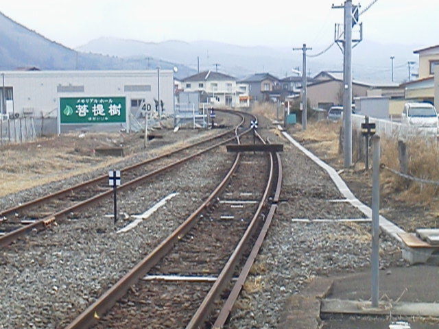 女川の一つ手前、浦宿駅ですね。延々と錆びた線路…路盤も荒れ放題。
