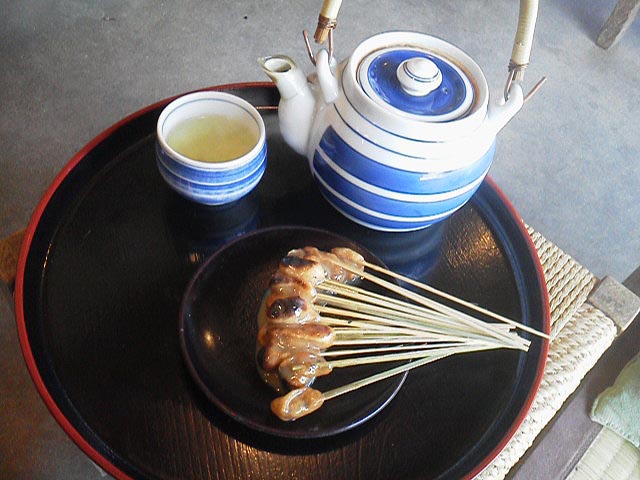 細い竹串の先に差した小ぶりな餅を