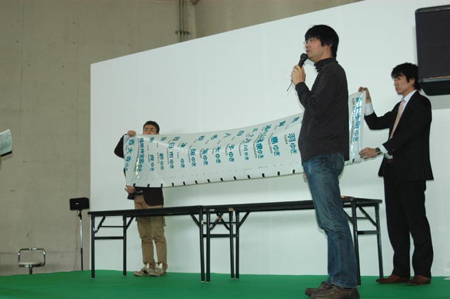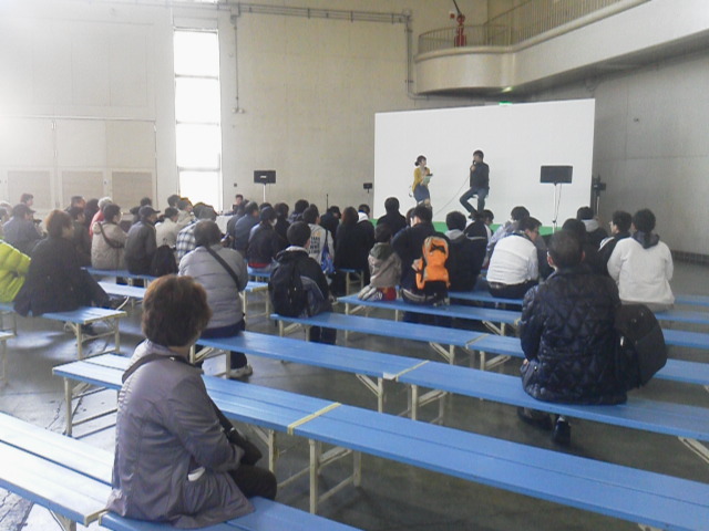社長のステージは、歌が2曲とトークショー。先日の宮城県女川町の話、