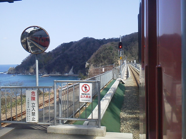 橋梁を渡りきった所にあるのが餘部駅です。「餘部風特発ケース」