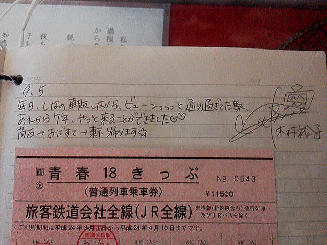 そして駅舎にあるノートに、社長の足跡を発見!