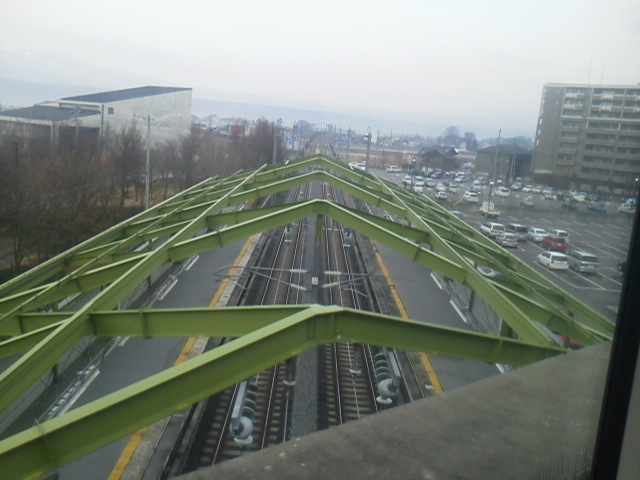 在来線の小海線のホームが、新幹線より上にあるという斬新な構造…。