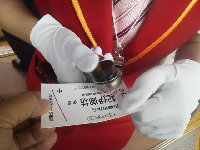 帰路の車内では、社長による車内改札が行われました。