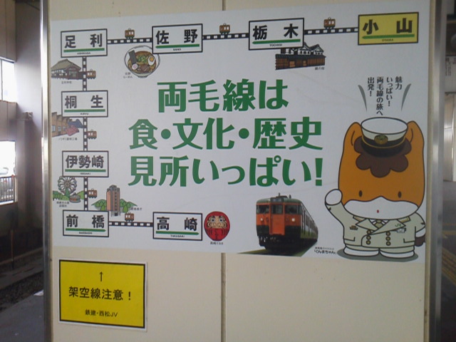 「架空線注意!」…?いや、両毛線はちゃんと実在する路線だし