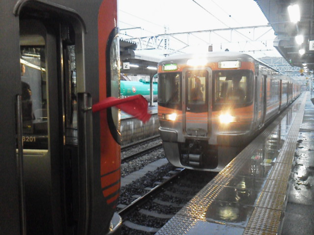 中央西線を帰る途中のセントラルライナー。中津川の駅で