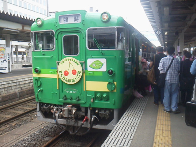 そして山形からは左沢線のトロッコ列車、「さくらんぼ風っこ号」に