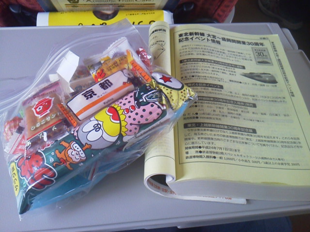 発車と同時に、お菓子が配られました。…芸が細かい。