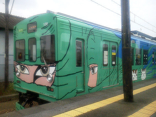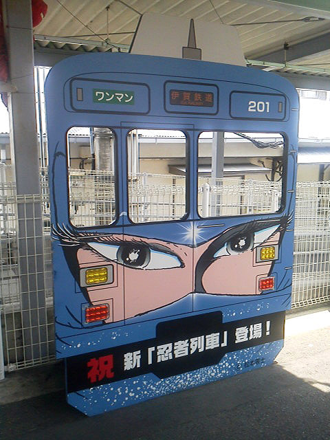 忍者列車の緑に出会いました。…残りは忍者列車の青なんですが…