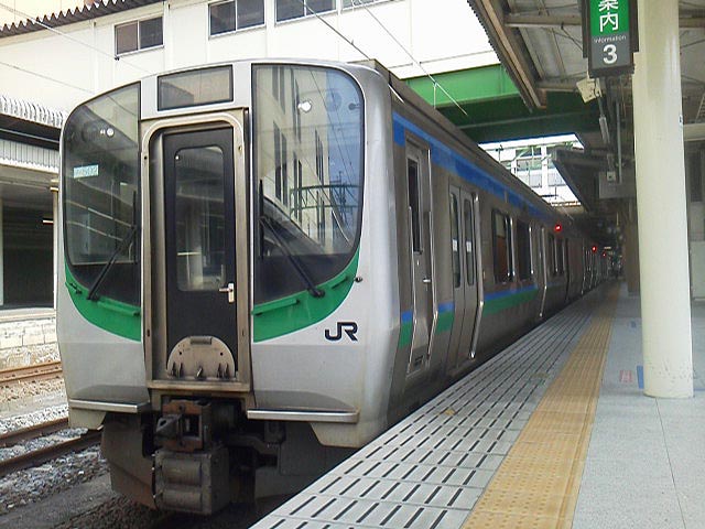 仙台空港行きの電車はE721系。JRと仙台空港鉄道の双方の車両が