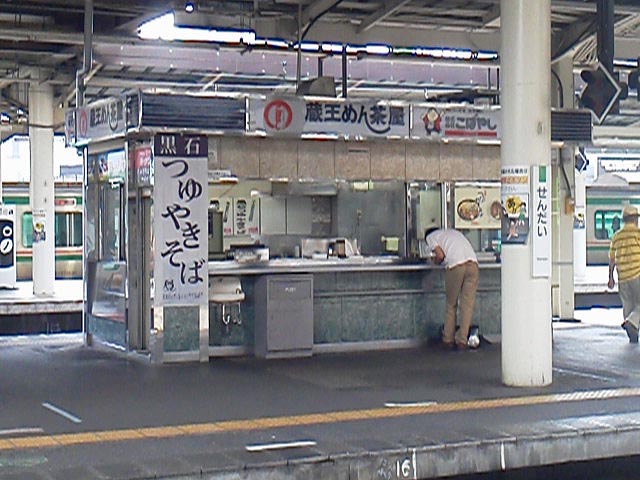 向かいのホームには、例の「つゆ焼きそば」のお店がありますが…