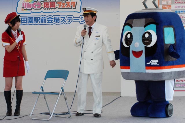 出演は社長の他、MCのお姉さんと仙台空港駅の駅長、そして何と