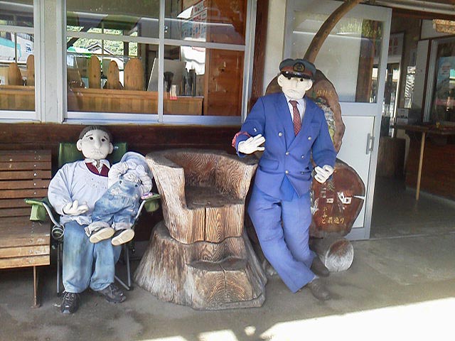 若桜鉄道では、各駅にご当地名物の案山子が置いてあります。