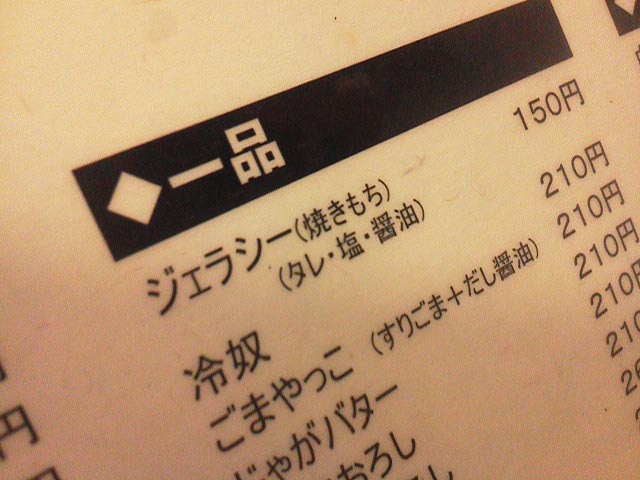 居酒屋メニュー、「ジェラシー」!