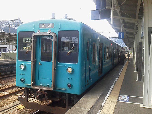 んでココからは西日本エリア、ヤケクソな塗装の105系に乗ります。