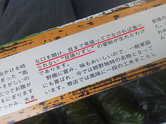という事で「めはり寿司」。説明にも、そのように書いてありますね。