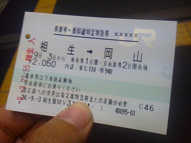当日は、夕方に仕事が終わって、まずはその日のうちに岡山へ移動