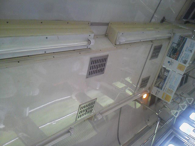に座ったもんで、車窓風景がドット状態!
