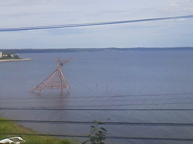 右の画像にある三角形の構造物は、この地方の独特の漁法である