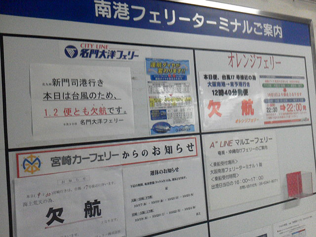 やっぱりコノ台風です。殆どの便が欠航してるみたいですねぇ。