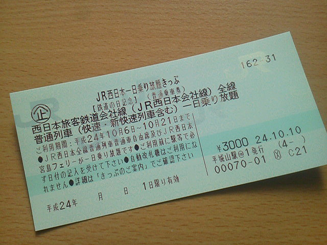 「西日本乗り放題きっぷ」を使いまして、