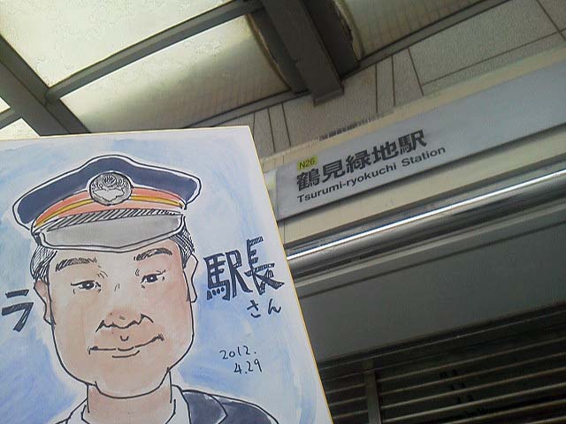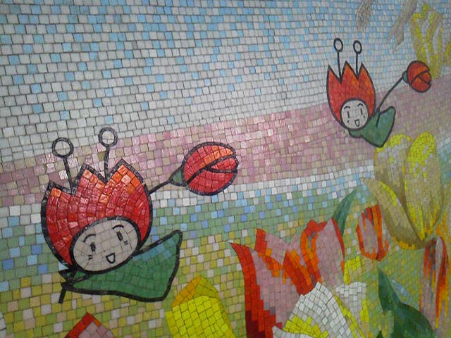 駅の壁には、花博のマスコットキャラ、