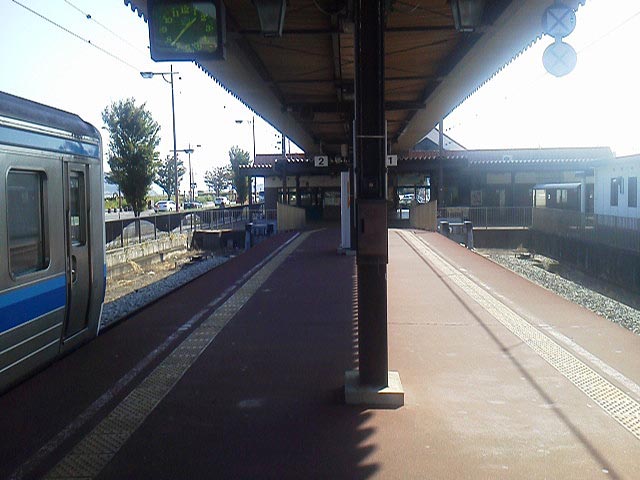 …ちょっと南国ムードな駅舎。いいお天気に映えますね。