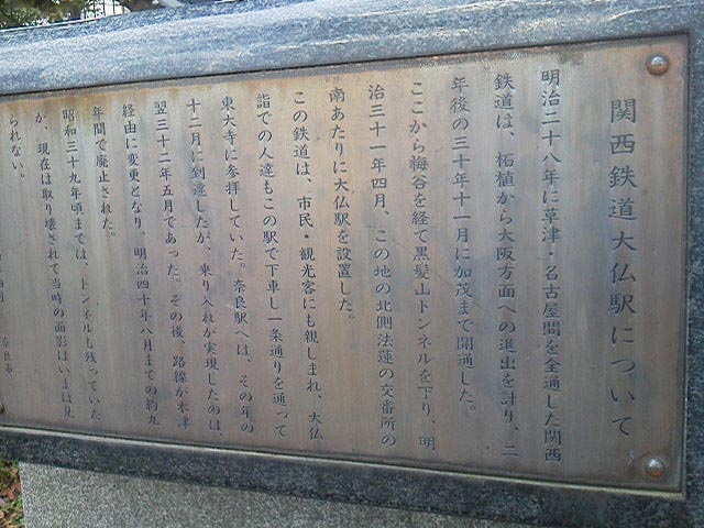 この地に開業した時に、奈良側の終着駅は「大仏駅」という駅