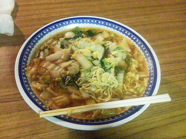 俗に言う「スタミナラーメン」という類のモノで、白菜やニラ、豚肉などを