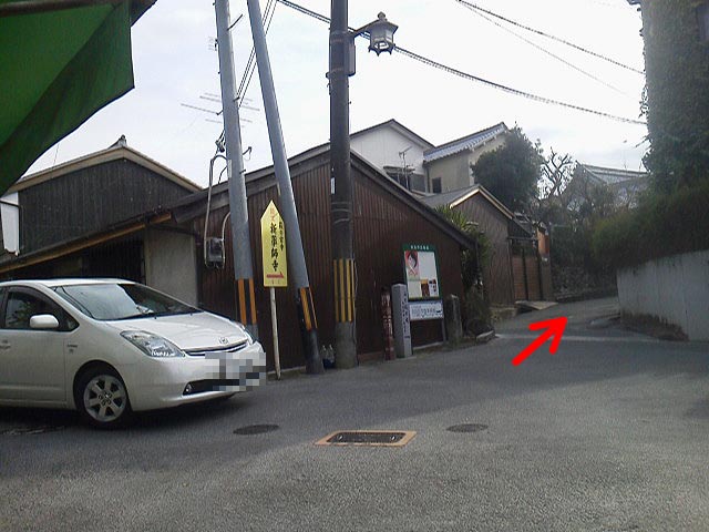 …白い車が居る方向から、矢印の方の狭い路地へ曲がるのですが、