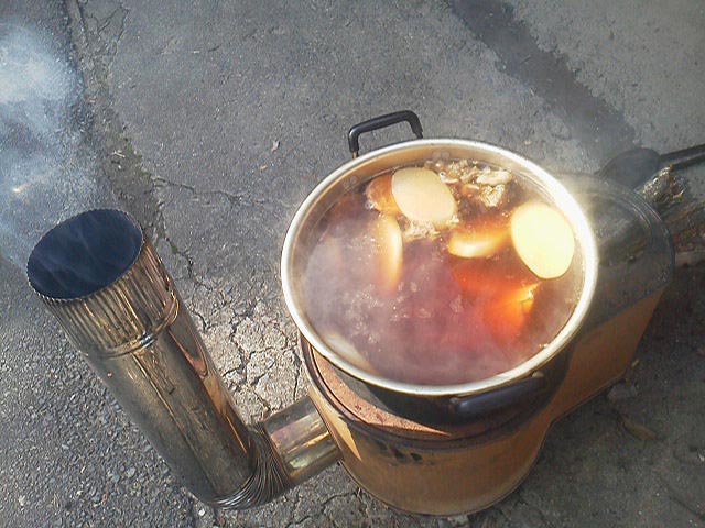 店先では、薪ストーブ(ってかコンロ?)の関東煮(おでん)が、コレまた