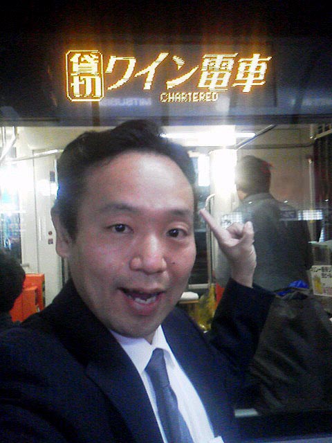 …岡山電気軌道の人気企画、「MOMO DE ワイン電車」ですよ。