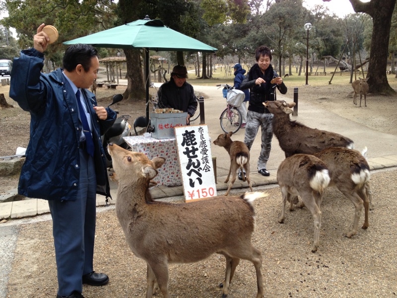 …嬉々として鹿せんべいを配る