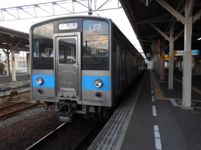 向かい側のホームに入ってたのが、予讃線の113系(1533M)ですね。