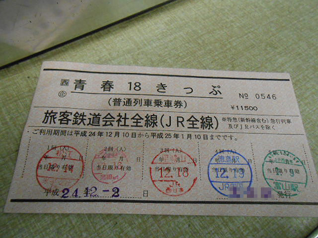 今回の青春18きっぷも、めでたく5コマ目が埋まりました。