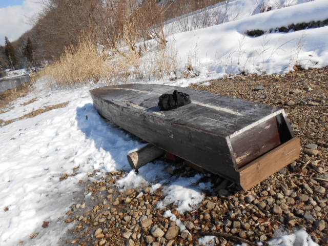 近くにボートが伏せて置いてあった(もしかしたら元々ベンチ扱いなのかも)