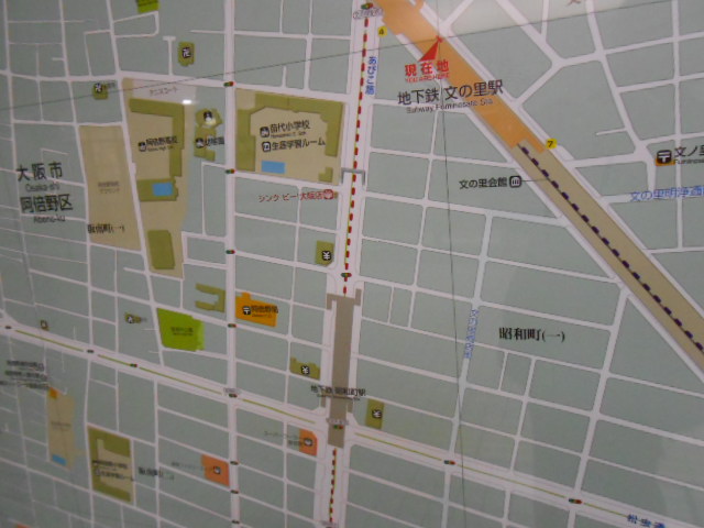 で、降りてみて気付いたんですが、文の里と御堂筋線の昭和町って、