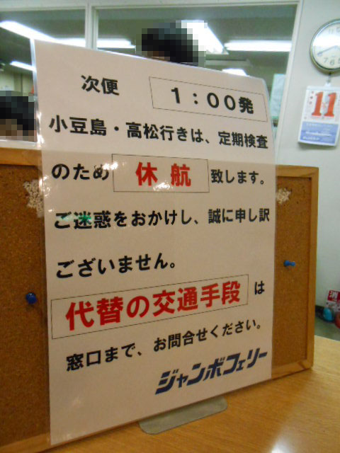 さて、今回はココから、うどん県の高松までフェリーで移動するんです。