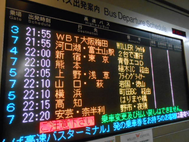 各地へ旅立つバスが5分間隔なのね。