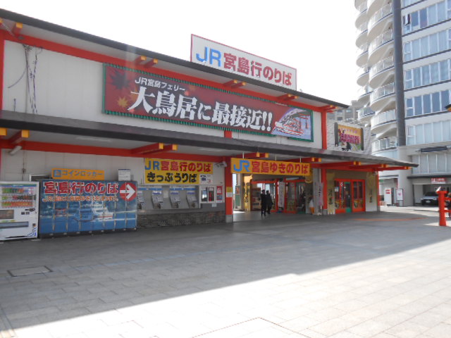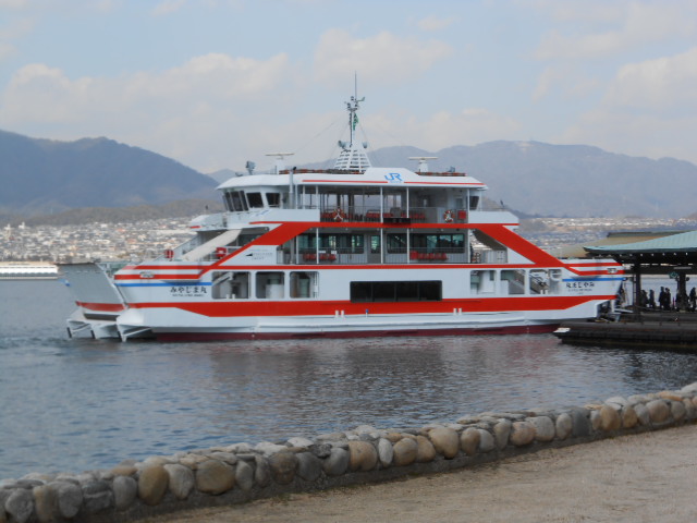 駅から歩いてスグの船着場から、宮島航路の船に乗ります。